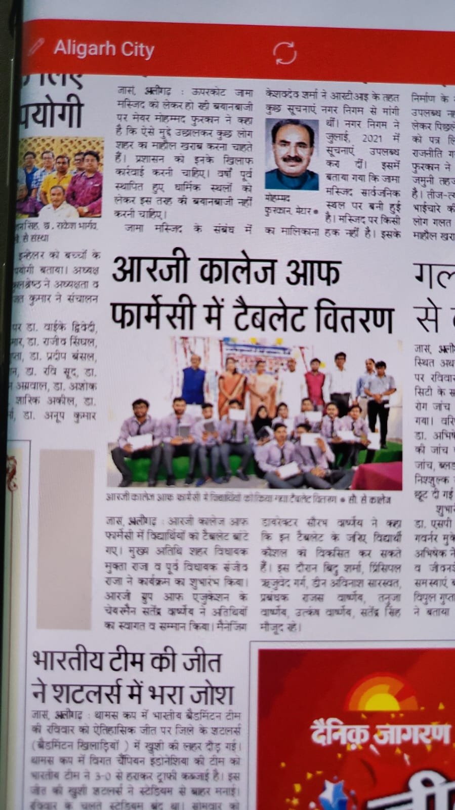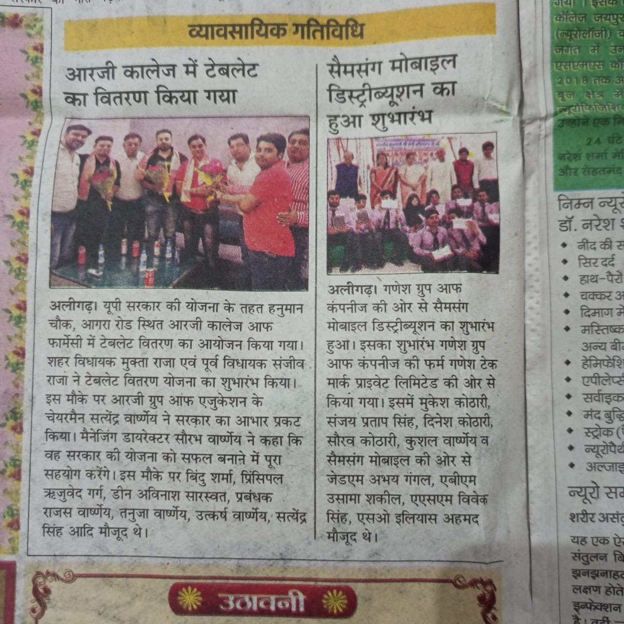 आरजी कालेज ऑफ फार्मेसी में टेबलेट वितरण हुआ, टेबलेट पाकर छात्रों के चहरे खिले